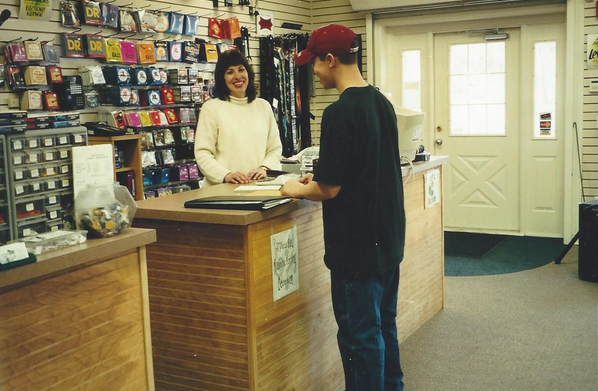 Another storefront became available in the shopping center and it was converted into a teaching studio containing three rooms, one with a drum set, one with a piano and the other for guitar and wind instruments. This added another 400 square feet to the shop. The wall separating the original teaching room from the rest of the original store was removed and the sales floor expanded to accommodate more inventory with the shop now expanding to accommodate string, woodwind, brass and keyboard instruments as well as repairs and rentals of all instruments and amplifiers. The variety of accessories was greatly expanded to accommodate the needs of all musicians, including effects pedals, reeds, cases, harmonicas, tuners, etc.